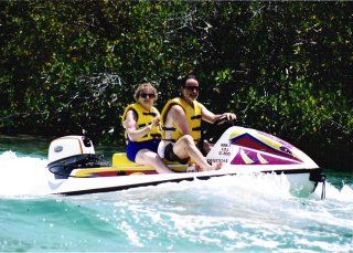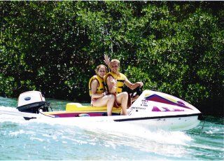 One of the days while in Cancun, the entire group ... ages 17 to 83, went on an adventure called the Jungle Cruise. With 2 people per "boat", we cruised across the lagoon to an island located in the lagoon where navigated channels between banyan trees and observed the area wide life. After about 45 minutes we exited into the ocean just off the coast of Cancun and the Mayan Riviera where we snorkeled for about 45 minutes.